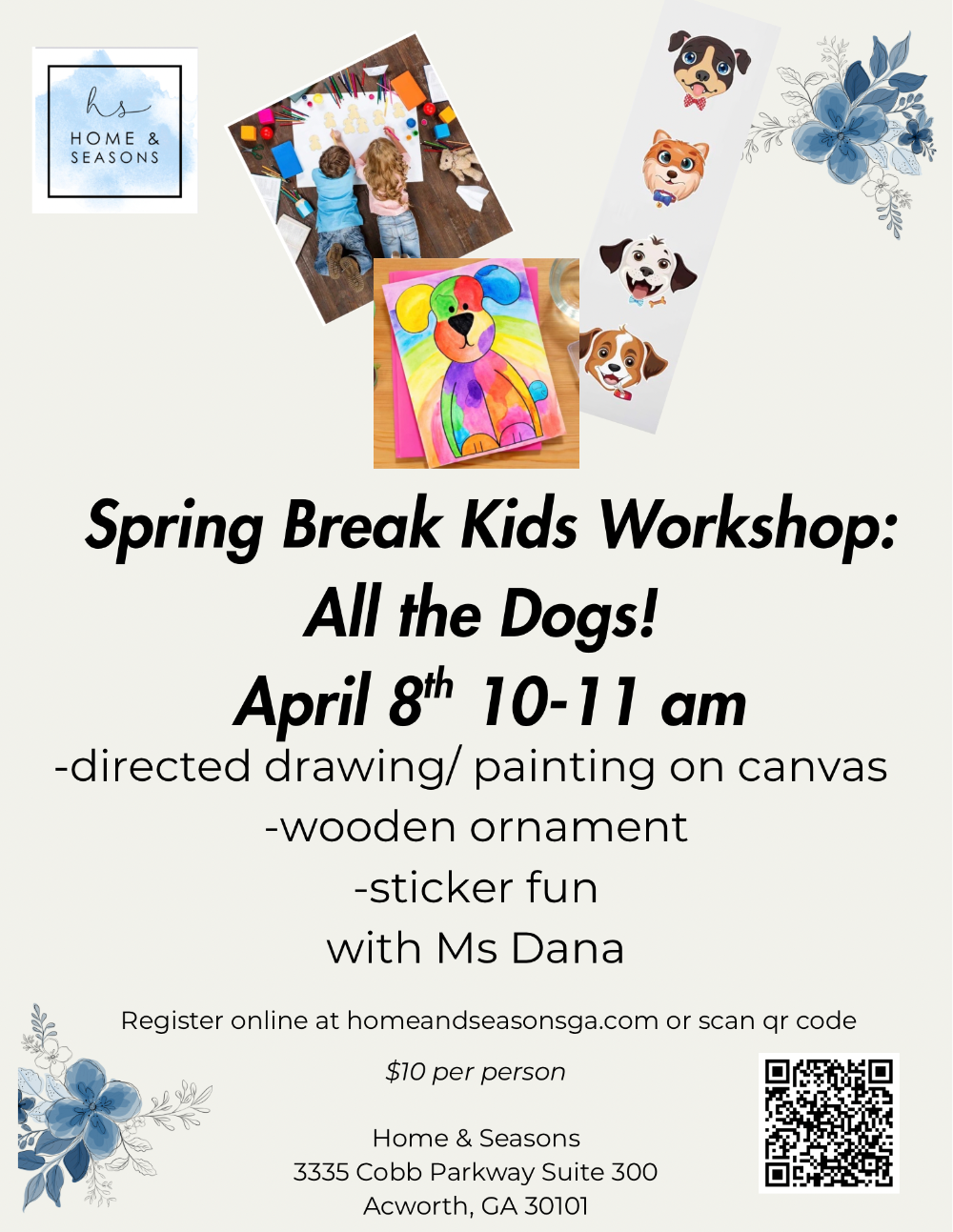Join us all week at Home & Seasons at 10 AM for a series of fun classes and story time. Miss Dana will walk your child through a guided drawing of a dog on 8x10 canvas. We will also be decorating a wooden ornament and having sticker fun!